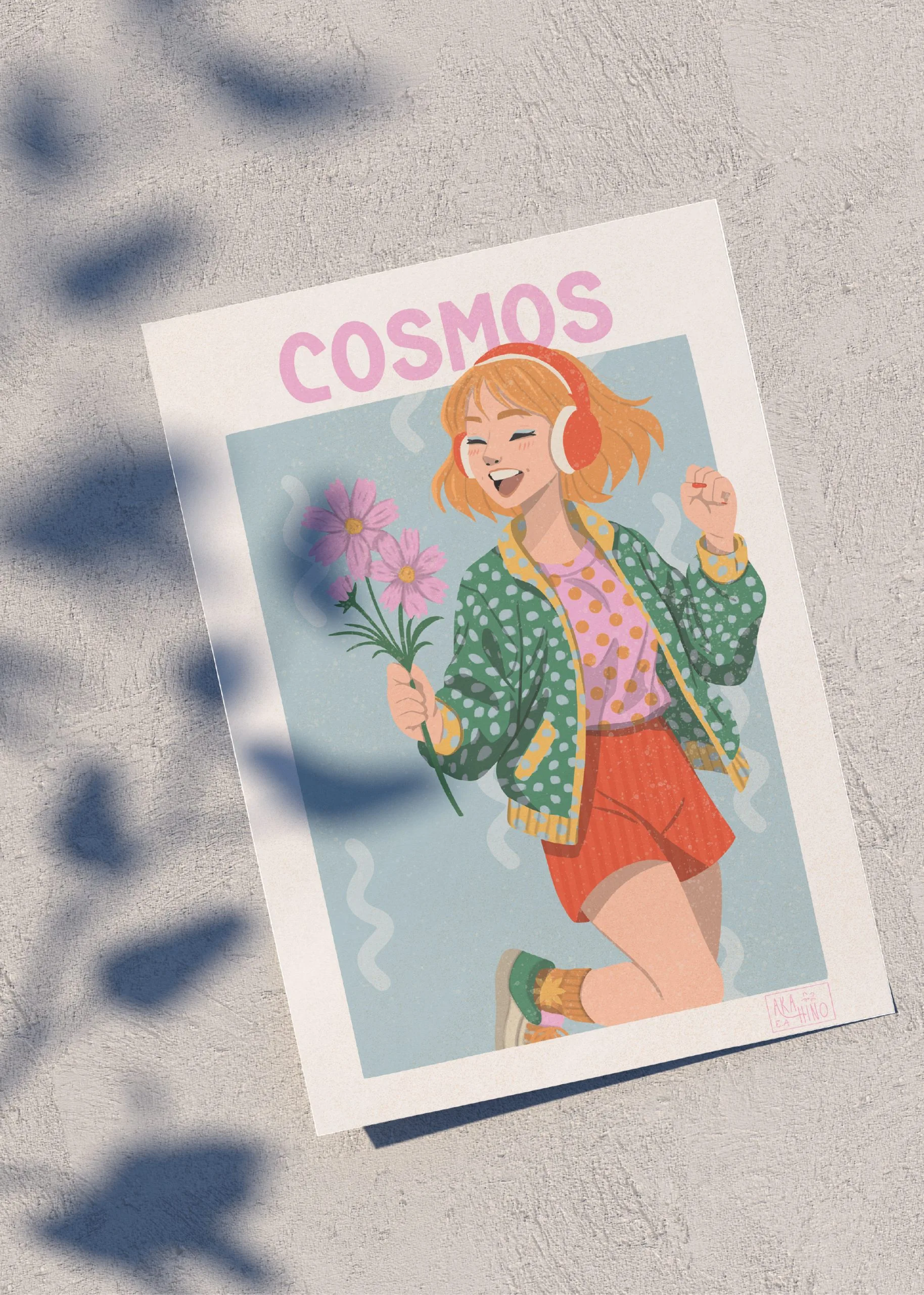 Cosmos incarne une féminité pétillante, libre et pleine de fantaisie. Cette illustration, inspirée par la fleur légère et colorée du cosmos, exprime une joie simple, une spontanéité naturelle et une véritable âme d’enfant à travers une femme vive et rayonnante, empreinte de charme et de douceur.
