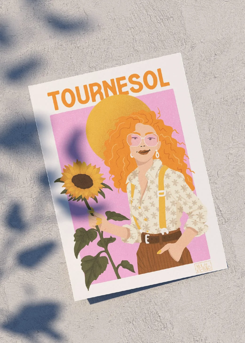 Sunflower incarne la joie, la confiance et la chaleur. Inspirée par le tournesol, symbole de vitalité et d’énergie positive, cette illustration déborde de peps et de lumière, mettant en avant une femme rayonnante, à l’aura solaire et communicative.