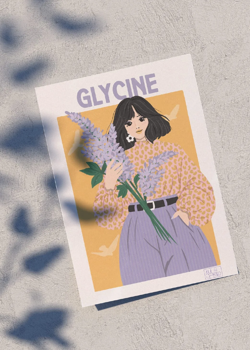 Avec Wisteria, plongez dans un univers empreint de sérénité et de poésie. Cette illustration met à l’honneur une femme gracieuse et bienveillante remplie de douceur et de gentillesse, à l’image de la glycine dont les longues grappes florales évoquent le rêve et l’apaisement.