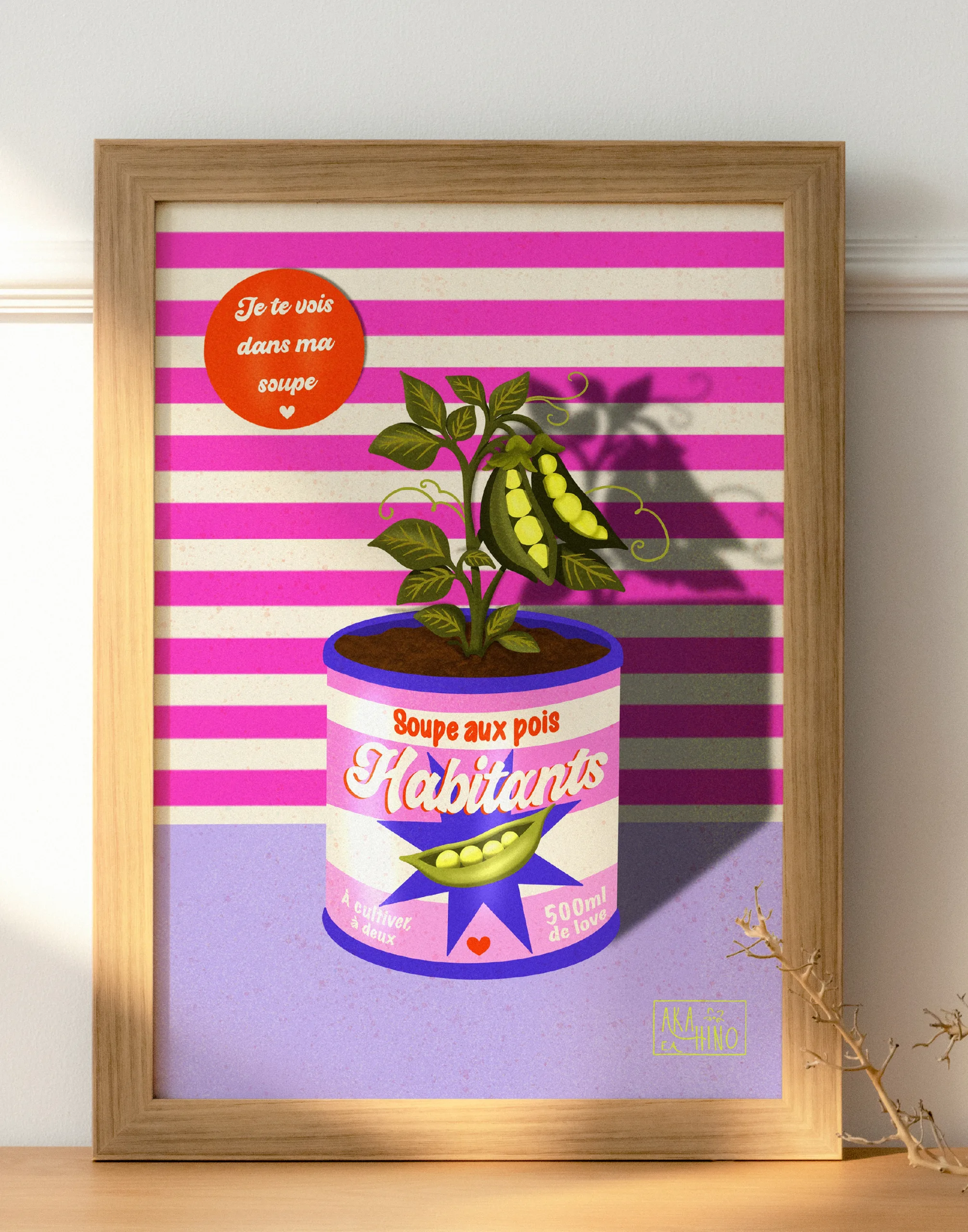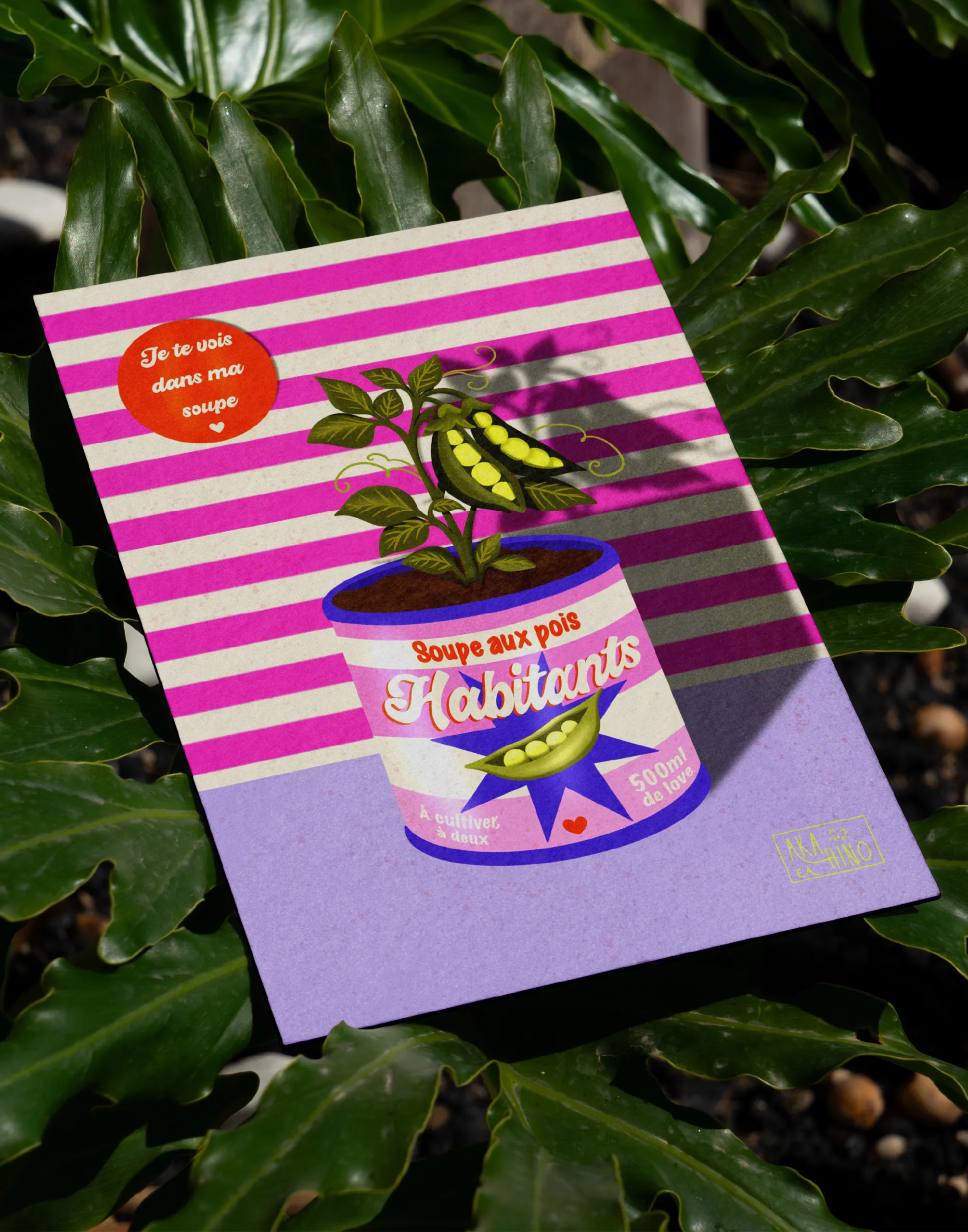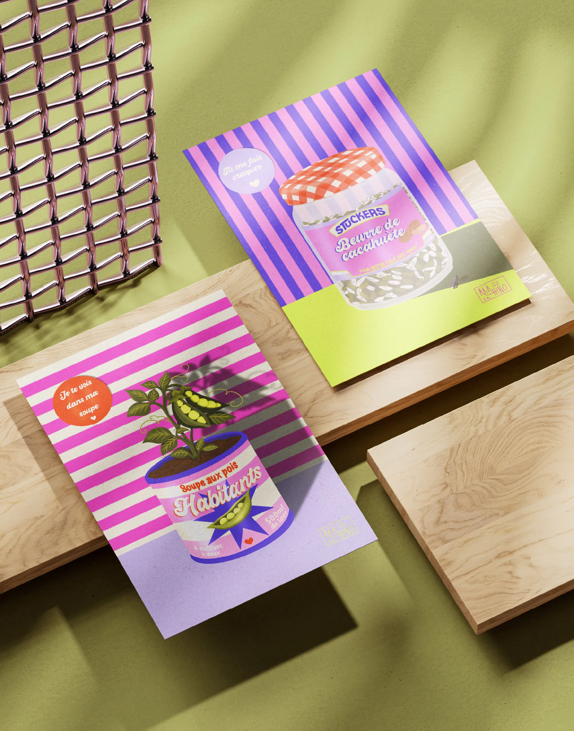 couleurs pop, textures légÚrement vintage et références aux packagings rétro.