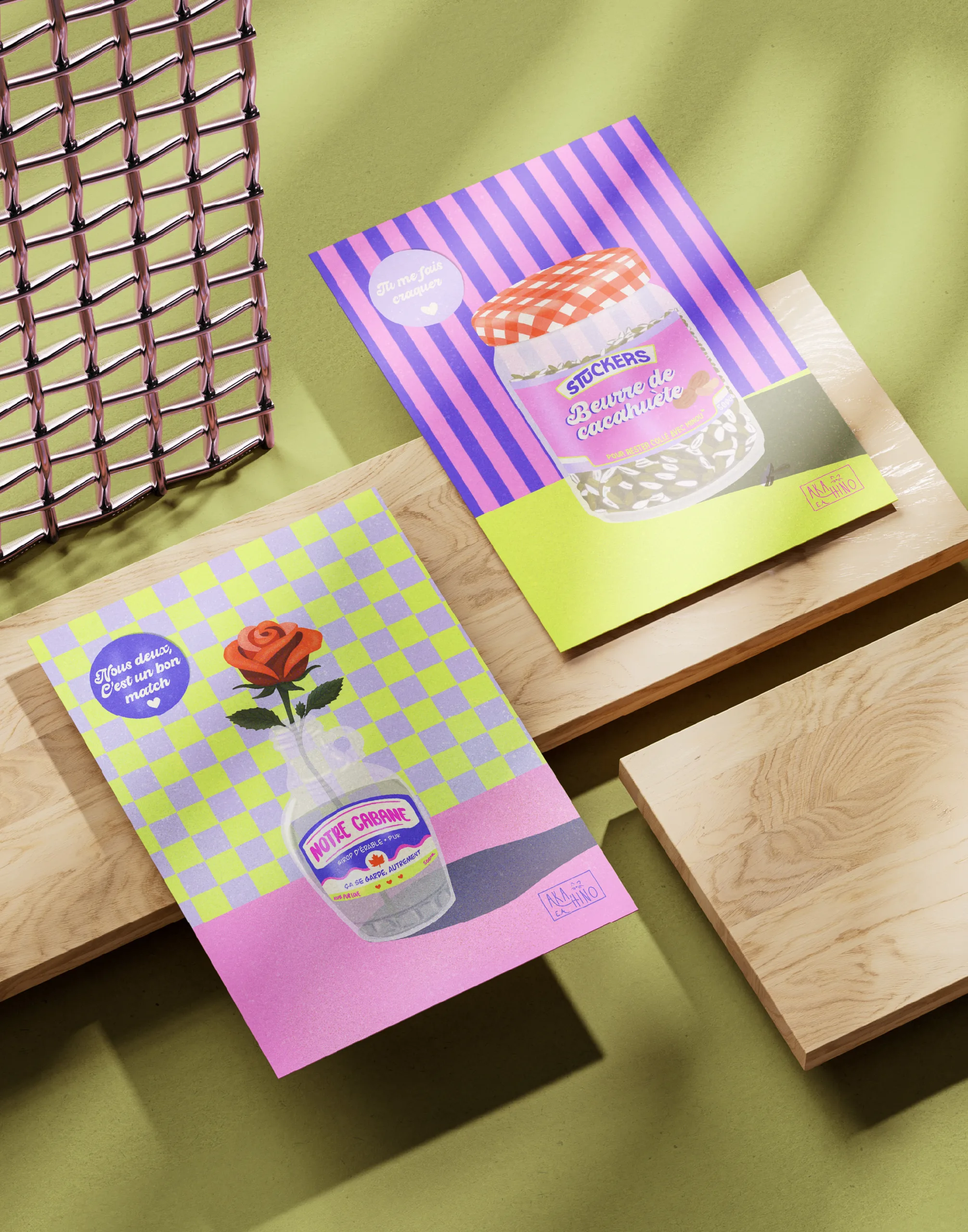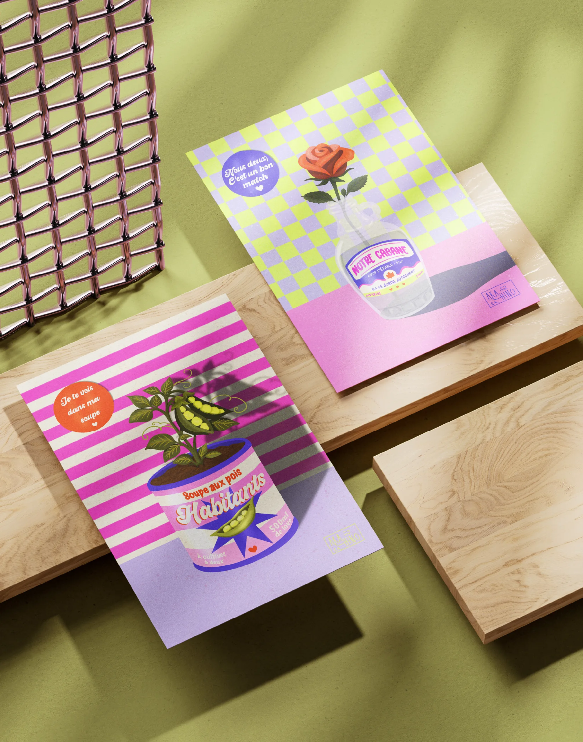 Possible comme un diptyque aux inspirations québécoises, vous pouvez choisir deux illustrations qui dialoguent entre elles à travers une esthétique commune :